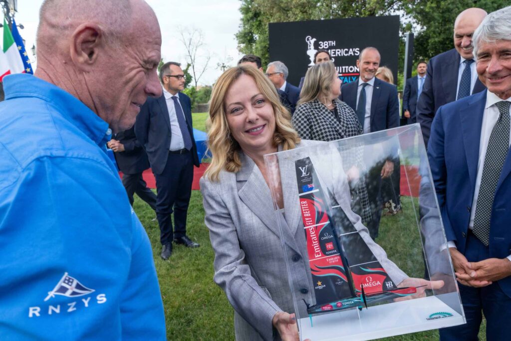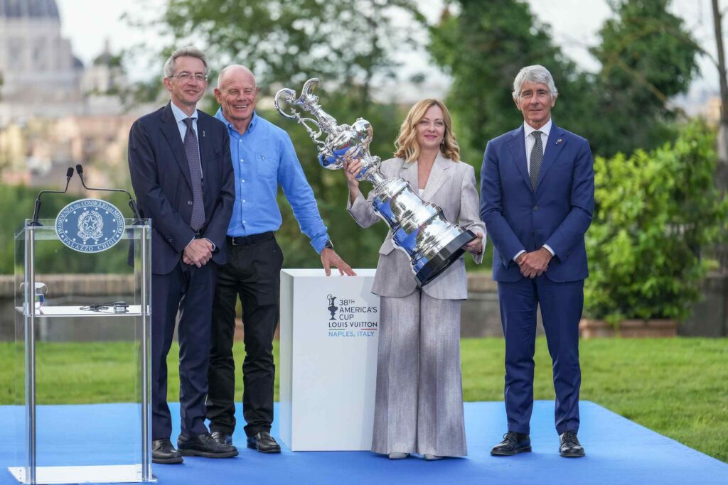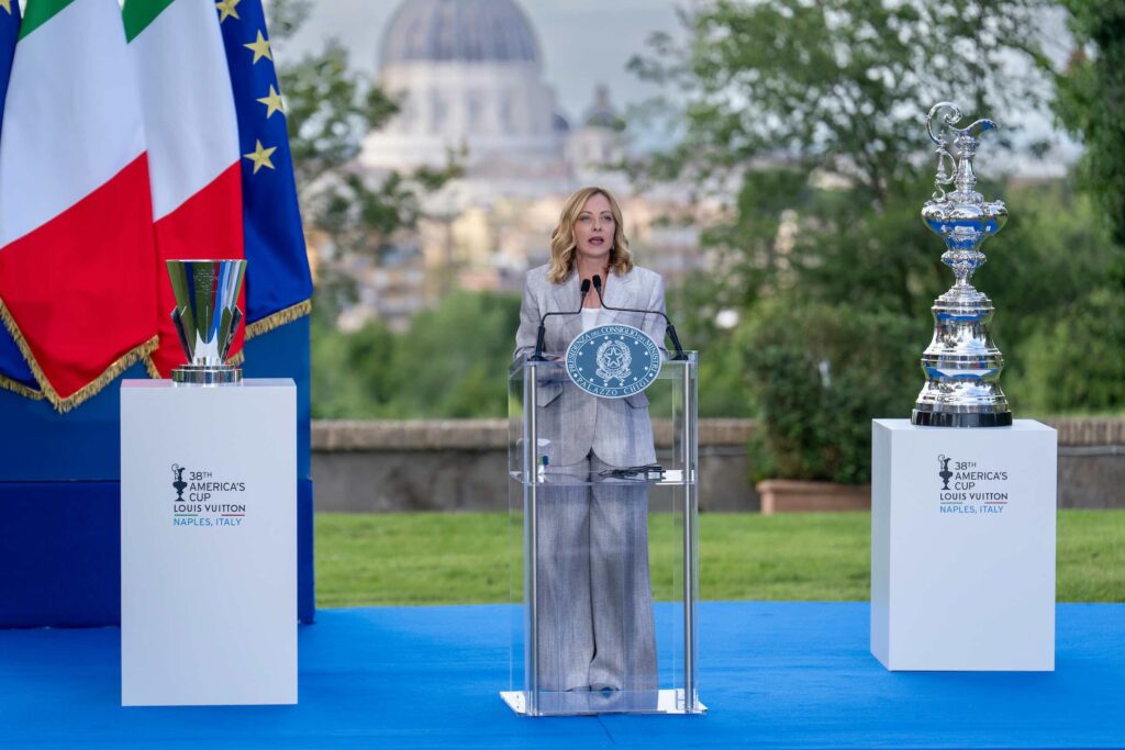 Con una cerimonia solenne ed emozionante svoltasi al Casino del Bel Respiro di Villa Doria Pamphilj, il Governo italiano ha accolto ufficialmente la Louis Vuitton 38th America’s Cup, che per la prima volta nella storia si svolgerà in Italia, e precisamente a Napoli. A rappresentare lo Stato italiano, il Presidente del Consiglio dei Ministri Giorgia Meloni, accompagnata dal Ministro per lo Sport e i Giovani Andrea Abodi e da numerose autorità civili e sportive.