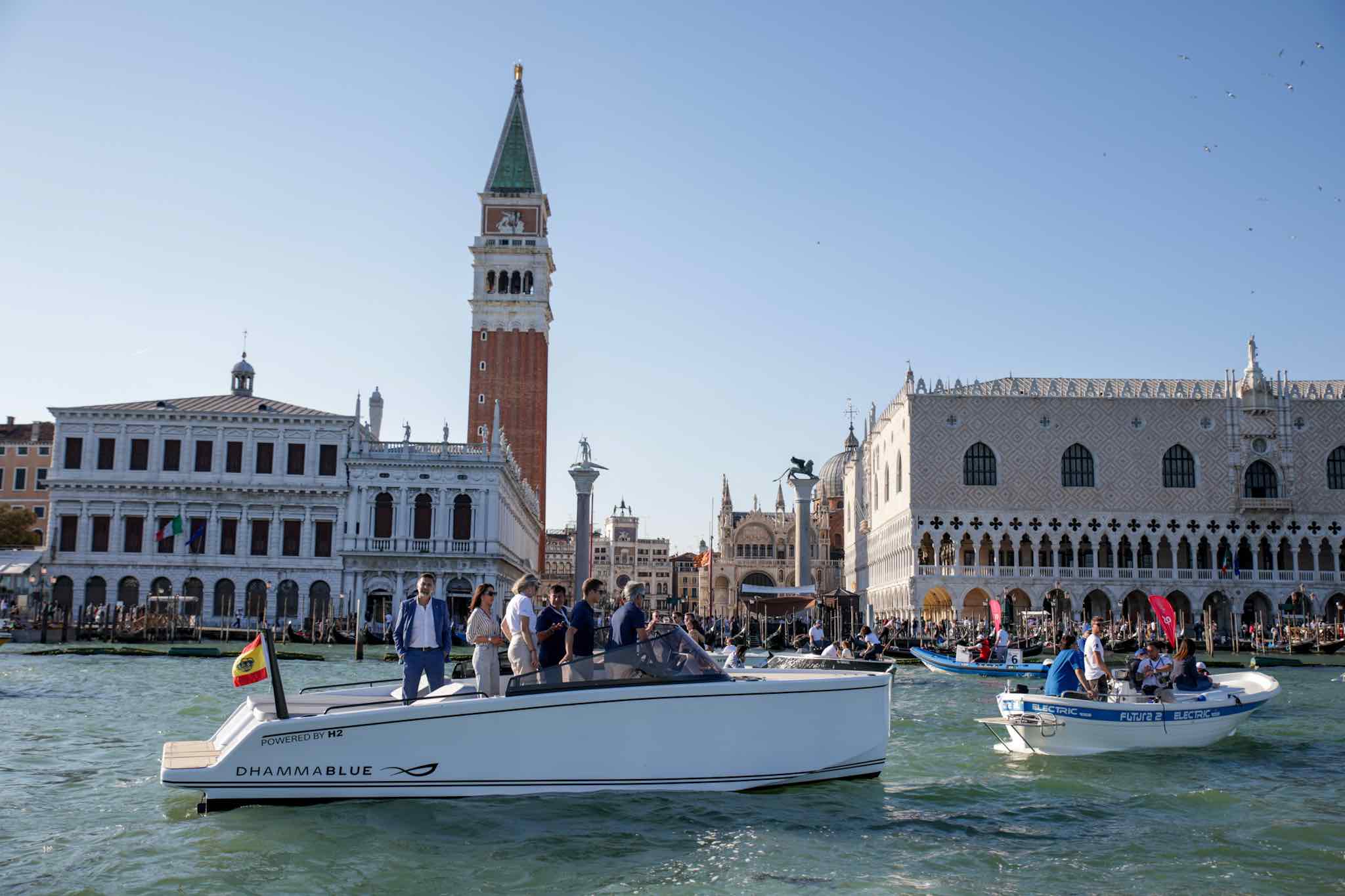 L’idrogeno entra in scena anche grazie a DhammaBlue, che propone un sistema di propulsione privo di idrocarburi, e si fa protagonista in laguna con il debutto del primo motobattello ibrido di Actv, nato in collaborazione con Vulkan Italia: sarà ormeggiato sotto l’opera Le mani di Lorenzo Quinn, diventando simbolo visibile della mobilità sostenibile veneziana.