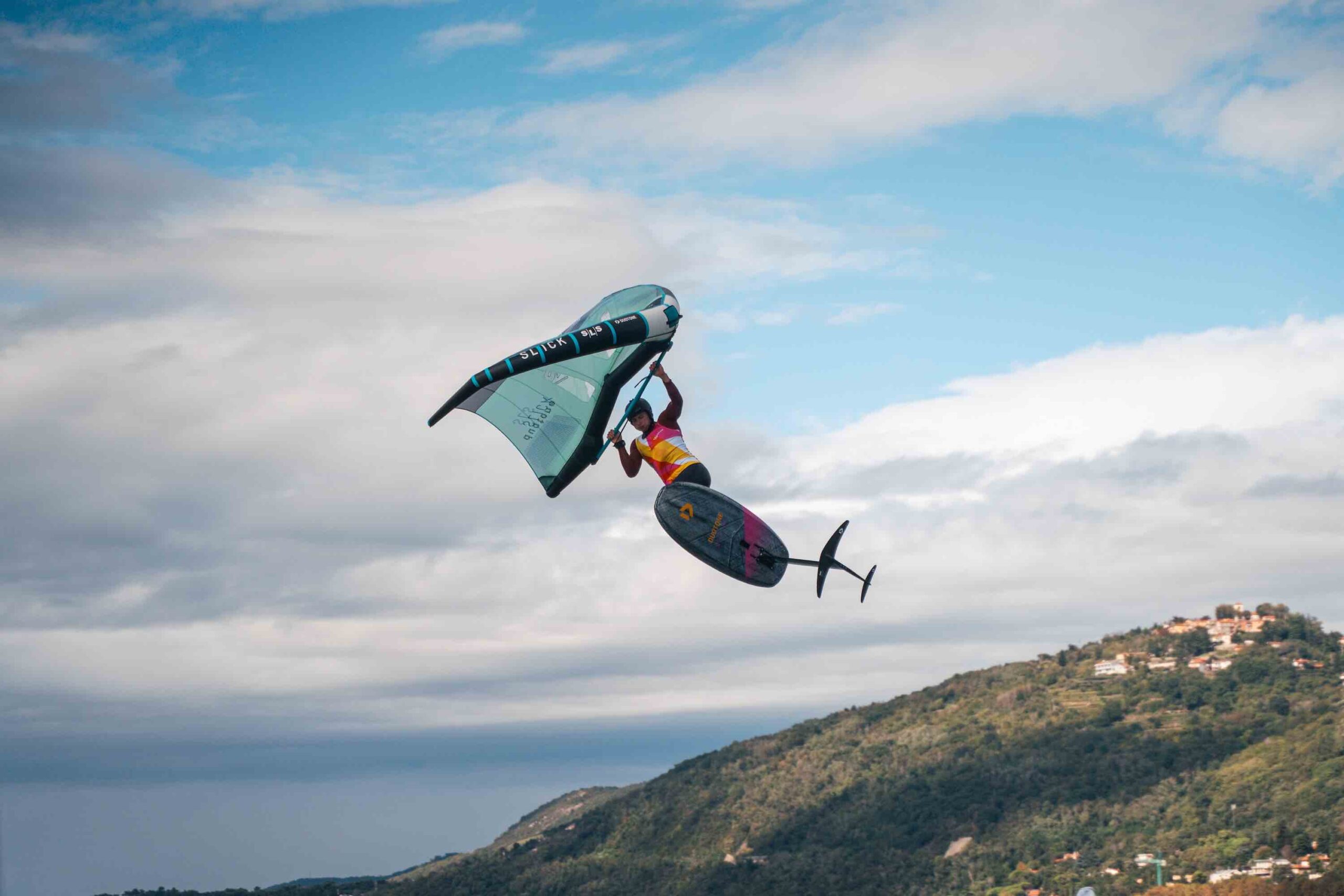 Il wing foil è una disciplina velica in cui si utilizza un’ala gonfiabile — il wing — impugnata con le mani per sfruttare la forza del vento. L’atleta si trova su una tavola con hydrofoil, una struttura alare che permette di sollevarsi sopra la superficie dell’acqua, riducendo l’attrito e regalando la sensazione di volare. La vela non è ancorata alla tavola, ma tenuta liberamente dal rider, offrendo grande libertà di movimento.
