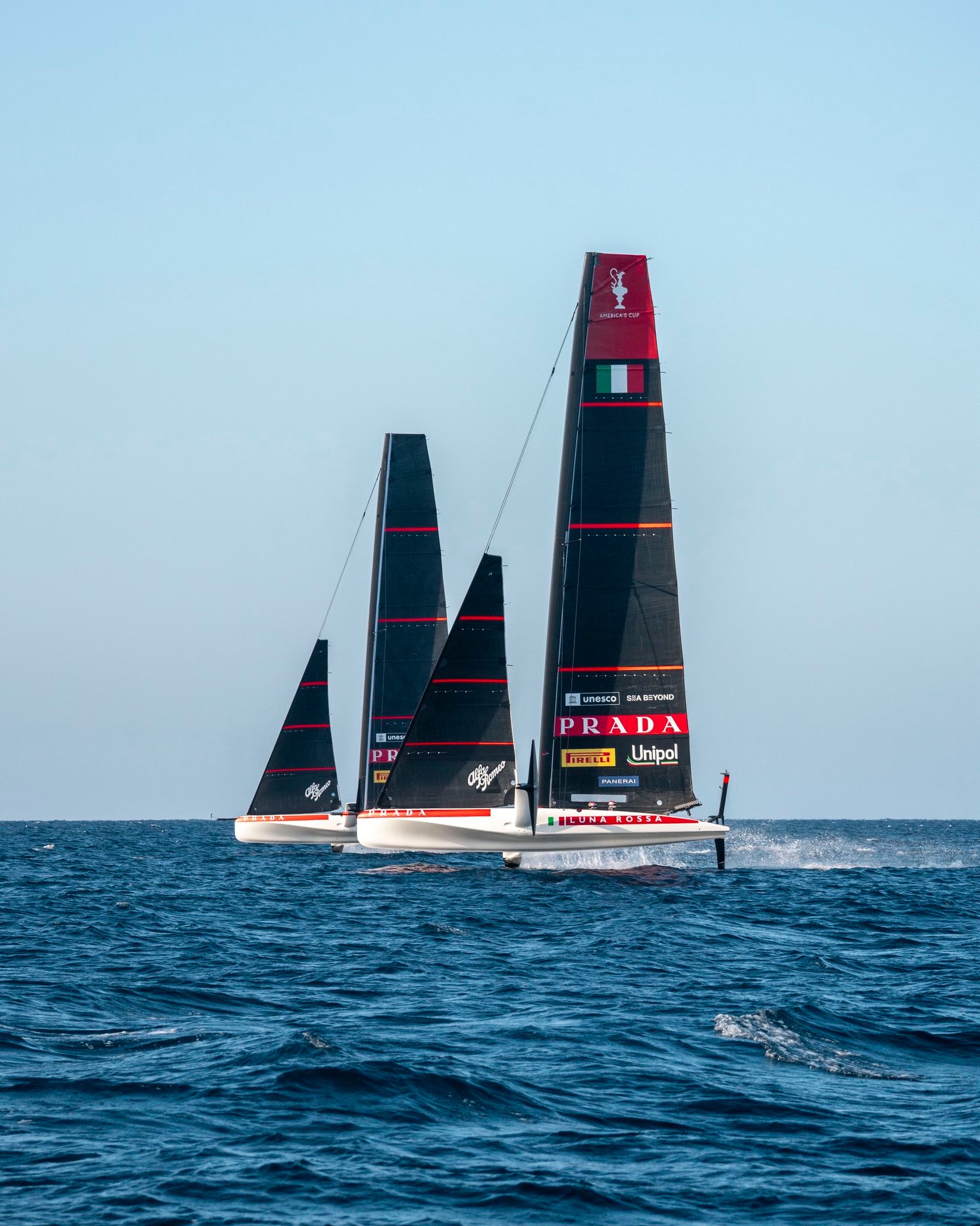 Luna Rossa Prada Pirelli ha diffuso sui propri canali social il primo scatto che ritrae i due AC40 del team italiano navigare fianco a fianco. Un’immagine simbolica che segna un nuovo passo nel percorso di avvicinamento alla 37ª America’s Cup di Barcellona.