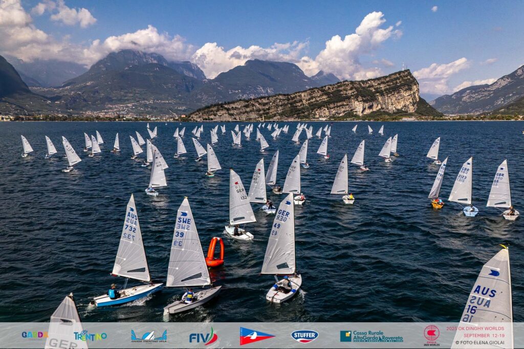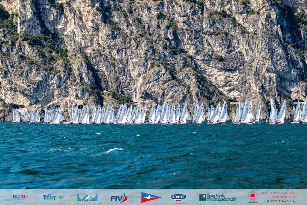 È ufficialmente iniziato al Circolo Vela Arco il Campionato del Mondo OK Dinghy 2025, che ha fatto registrare un record di partecipazione: ben 212 velisti in rappresentanza di 17 nazioni. La flotta è composta da numeri impressionanti, con 58 tedeschi, 34 australiani, 28 inglesi, 27 danesi, 24 svedesi e 17 neozelandesi, oltre a delegazioni più contenute da altri Paesi.