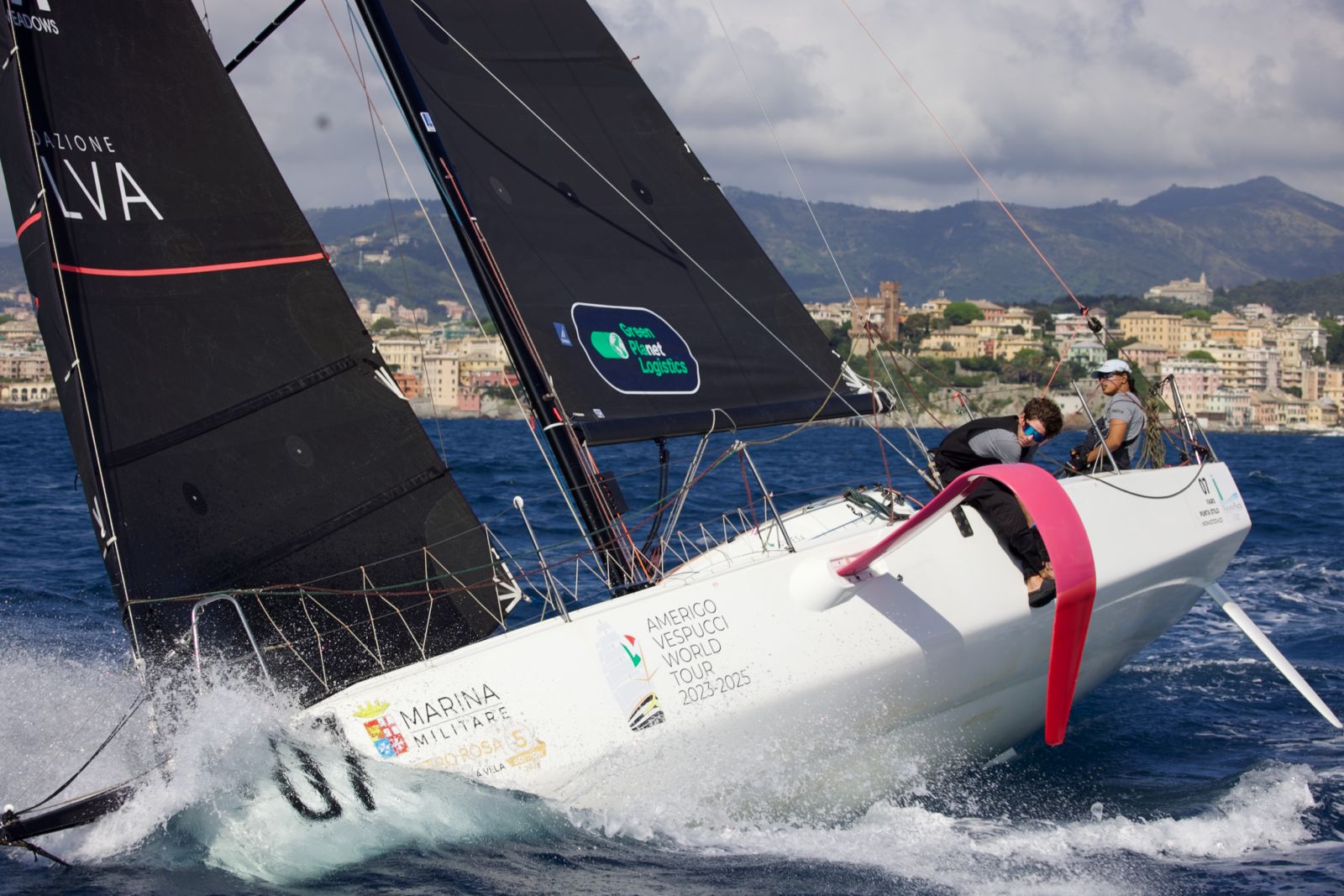Dopo le prime 150 miglia percorse con vento tra i 12 e i 24 nodi, la flotta – ancora compatta – si trova a circa 40 miglia dalla boa di Genova. Al comando il team francese di Guth e Hockings-Cooke, seguito dal team tedesco di Aalburg e Kennis e dall’Irlanda 2 di Hemeryck e Griffiths.