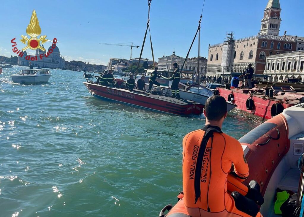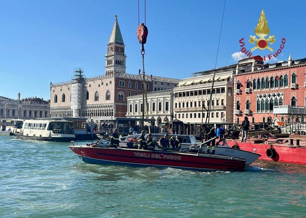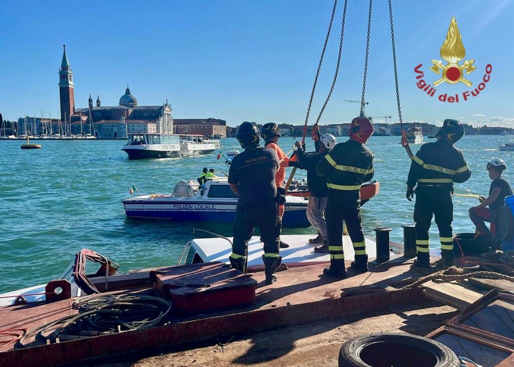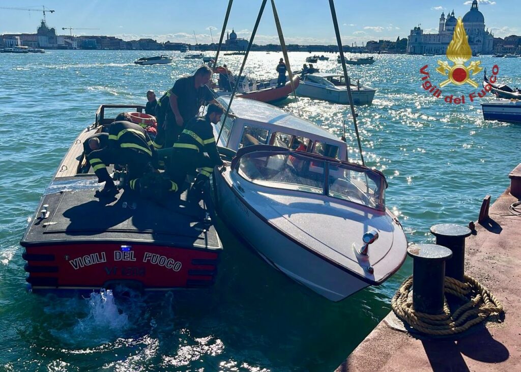 Paura davanti all’Hotel Danieli: Vigili del fuoco e sommozzatori al lavoro per mettere in sicurezza l’imbarcazione. Nessun ferito segnalato.