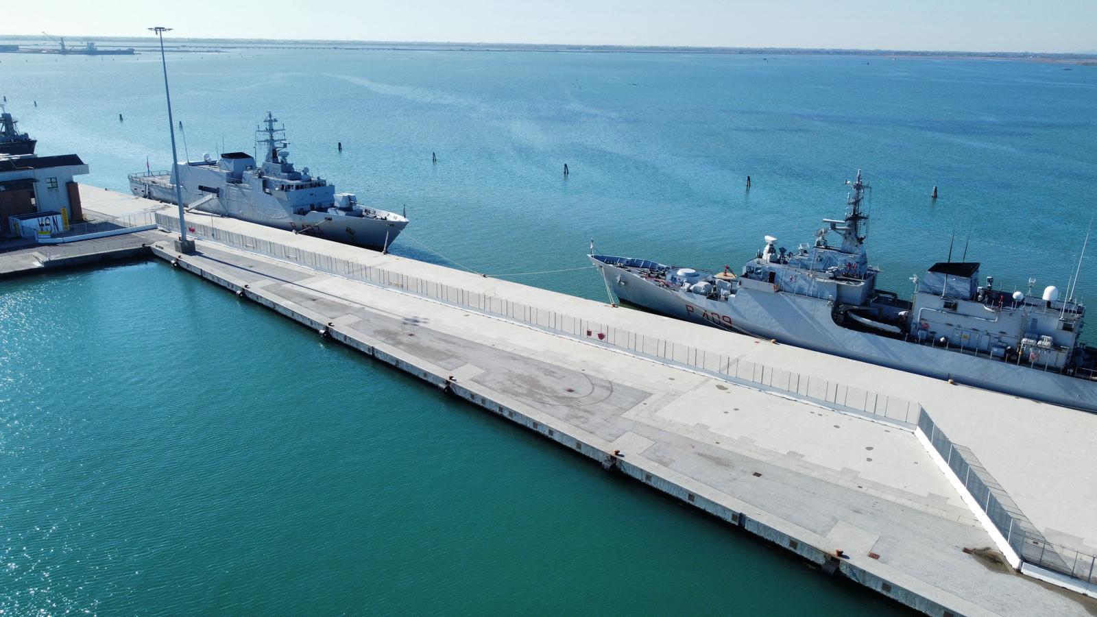 Alle prime luci dell’alba, accompagnate da due rimorchiatori, nave Foscari, nave Orione e nave Spica hanno solcato le acque della bocca di porto di Chioggia per ormeggiare alla marittima di Isola Saloni.