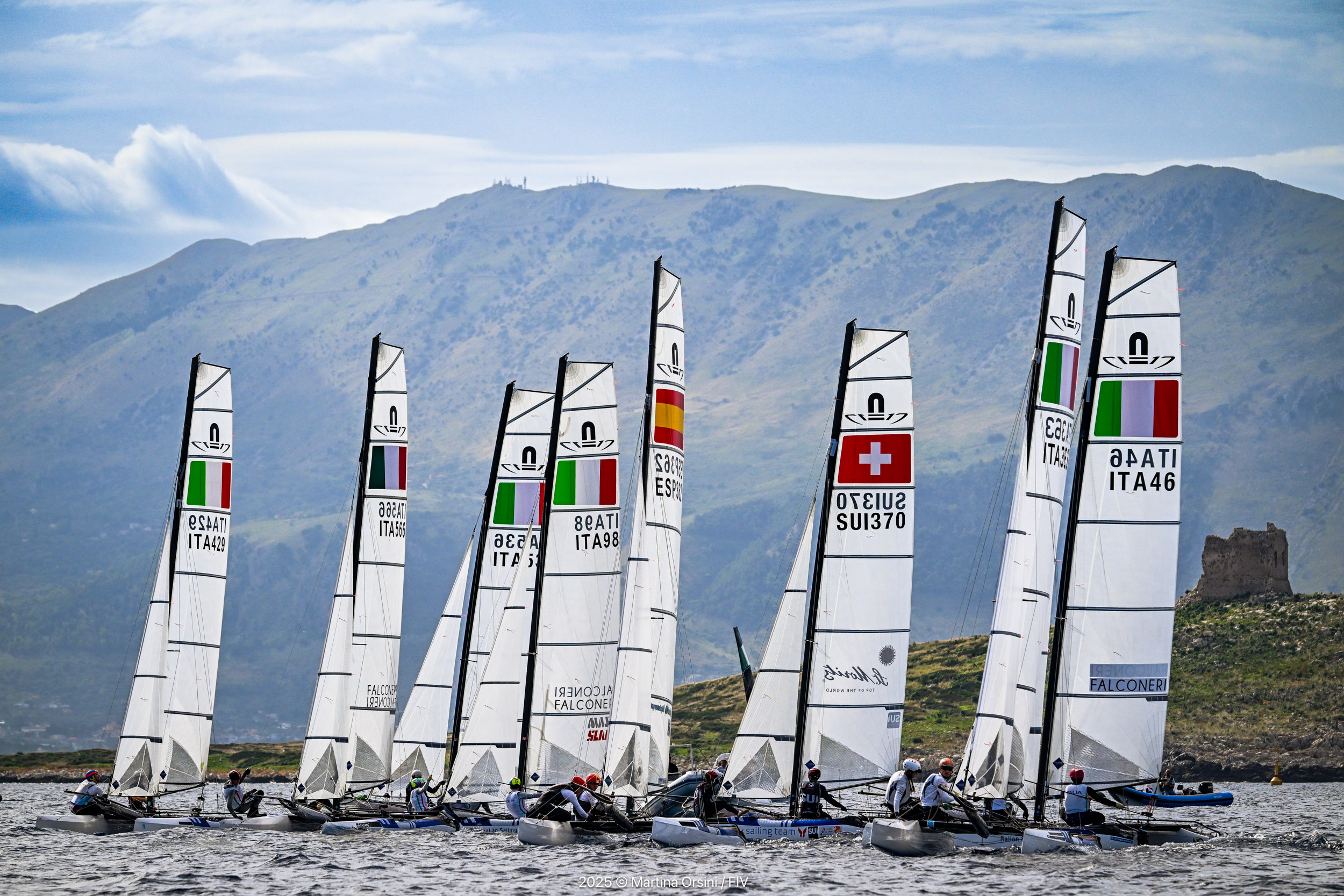 Prima giornata di regate al Campionato Italiano Classi Olimpiche 2025: quasi 30 prove tra Mondello e Isola delle Femmine, vento variabile e spettacolo in mare. Nacra 17 dominato da Ugolini-Giubilei, Maggetti seconda nell’iQFOiL femminile.