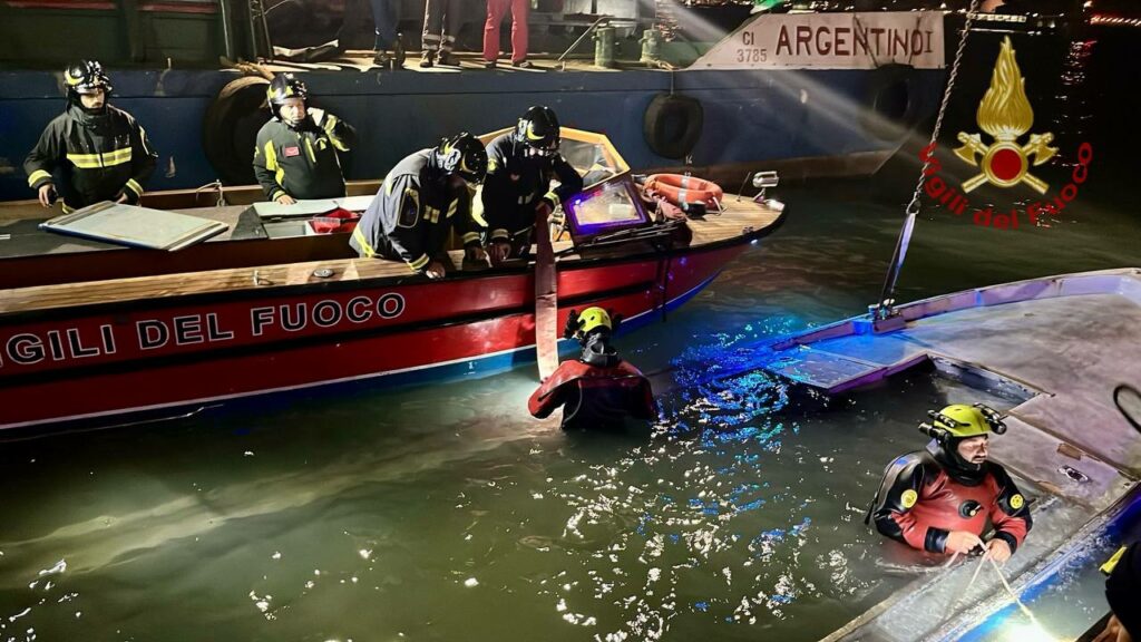 Una falla a poppa provoca l’affondamento di un mezzo commerciale a Venezia. Vigili del Fuoco e sommozzatori al lavoro per la sicurezza e il recupero.