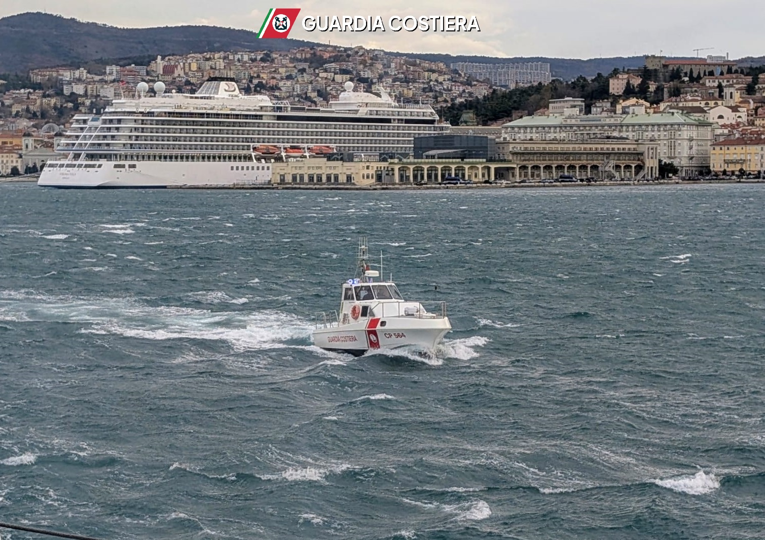 Raffica record di 119 km/h registrata da OSMER–ARPA FVG. La Guardia Costiera monitora costantemente traffico navale e condizioni meteomarine nel Golfo di Trieste.