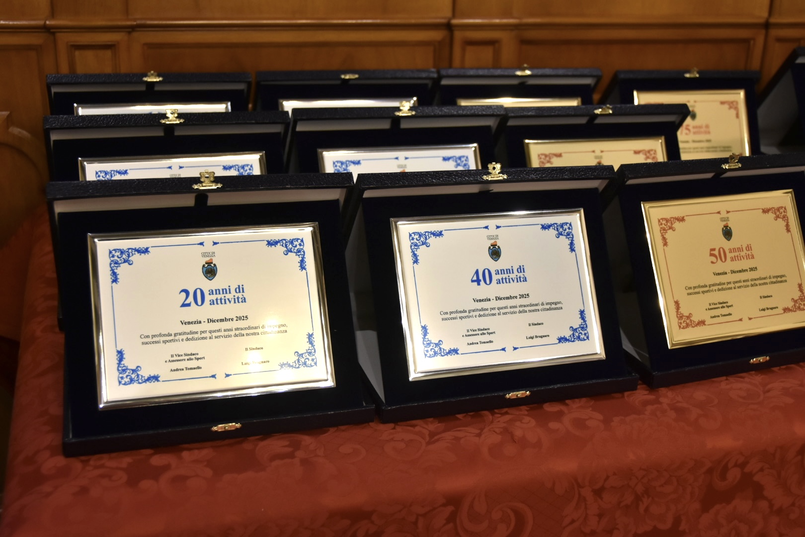“Oggi celebriamo le associazioni sportive che si sono maggiormente distinte, al termine di un 2025 particolarmente positivo per lo sport veneziano”, ha dichiarato il vicesindaco Vallotto. “Premiamo risultati e successi frutto di anni di impegno, sacrificio e lavoro quotidiano, che devono essere uno stimolo per tutto il movimento sportivo e un esempio per i giovani”.