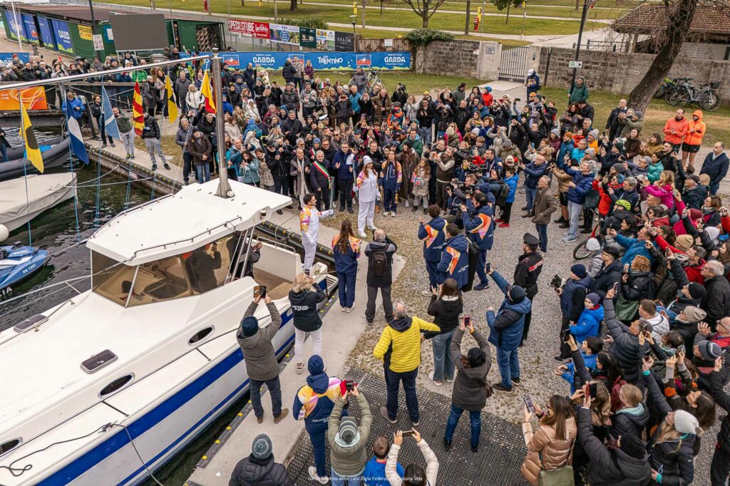 Il momento più suggestivo si è svolto nelle acque antistanti il Circolo Vela Arco, dal cui porticciolo ha preso il largo la pilotina con a bordo il tedoforo. Attorno alla Fiamma Olimpica si è composta una vera e propria parata nautica: le imbarcazioni delle forze dell’ordine impegnate quotidianamente nella sicurezza del lago, una rappresentanza di giovani velisti su derive e tavole a vela e diverse barche d’altura. Una presenza corale che ha dato concretezza al messaggio del Viaggio della Fiamma, rendendo visibile il legame profondo tra sport, territorio e comunità.