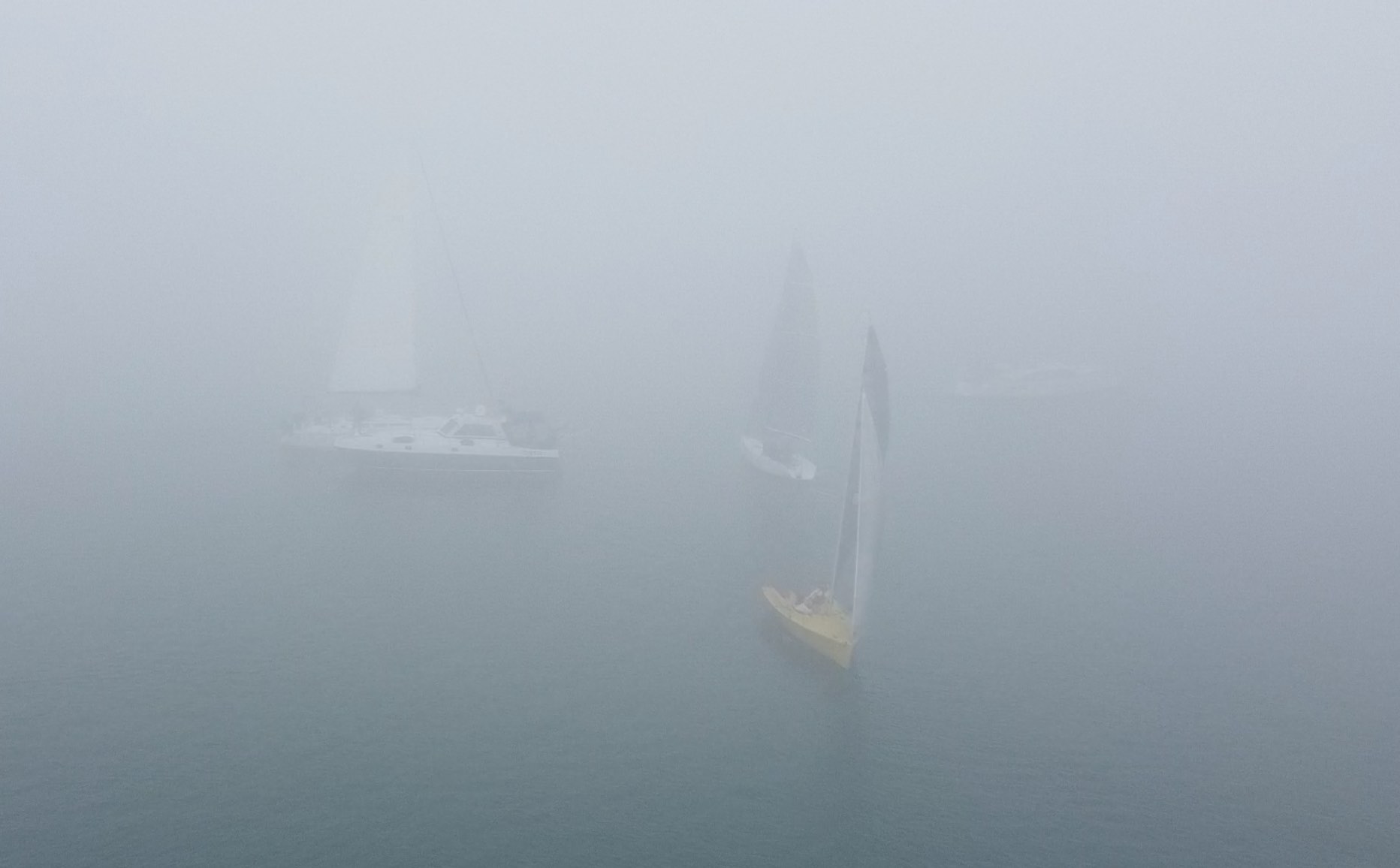La mattinata dell’annullamento si era aperta con condizioni apparentemente favorevoli, con un timido sole durante lo skipper briefing che aveva lasciato ben sperare equipaggi e organizzatori. A pochi minuti dalla partenza, però, una fitta nebbia ha improvvisamente interessato il campo di regata, riducendo la visibilità e portando prima al differimento e poi all’annullamento della veleggiata per motivi di sicurezza.