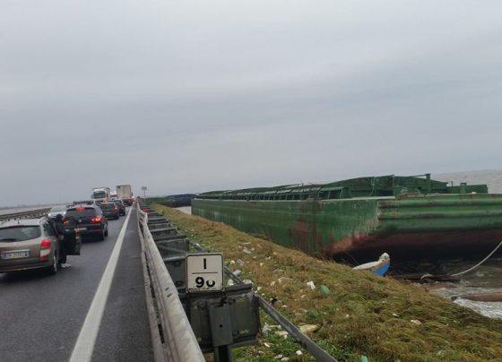 Nave rompe gli ormeggi, le chiatte finiscono in Romea e affandano barche