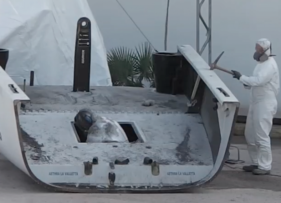 Ecco come finisce, a picconate, un classe Coppa America a Valencia