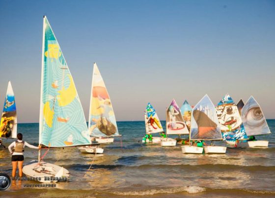 Venticinque barche a vela, con le vele dipinte dal vivo da 12 artisti urbani e writers e studenti dell’Accademia d’arte…