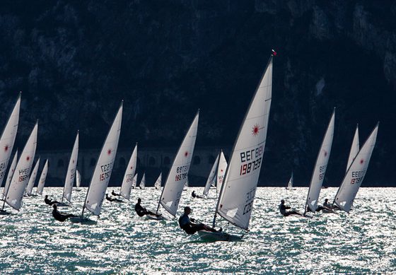 Due prove di buon mattino per i 267 laseristi che in questi giorni affollano il Nord del Lago di Garda…