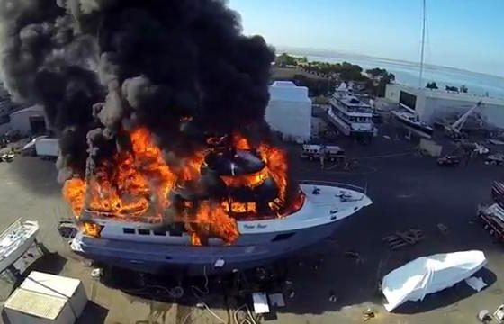 San Diego: l’incendio della Polar Bear ripreso dal drone