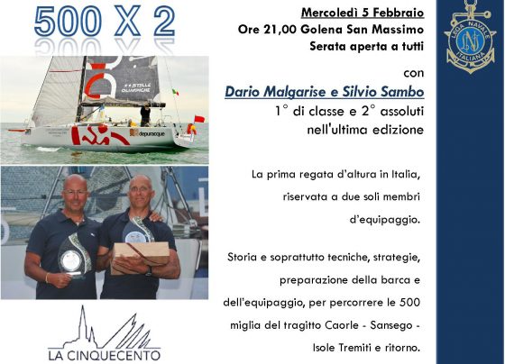 Sarà la 500 x 2 il tema portante della serata organizzata dalla Lega Navale Italiana di Padova il 5 Febbraio. La…