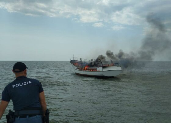 Imbarcazione in fiamme al largo di Porto Tolle, due uomini salvati dalla Polizia