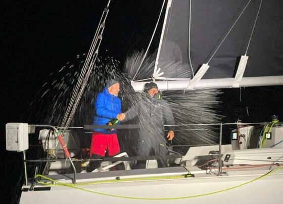 Tagliando il traguardo di fronte all’Accademia Navale di Livorno alle ore 00.54 min. 54 secondi di oggi, 28 aprile 2023, Lunatika, Sunfast…