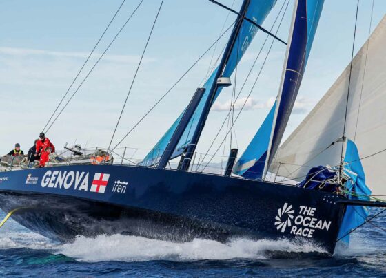 Lo skipper francese Kevin Escoffier ha portato il suo Team Holcim-PRB, con bandiera svizzera, alla vittoria nella prima tappa di…