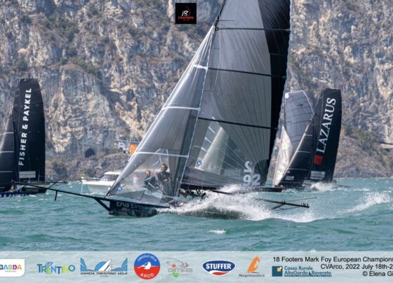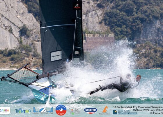 Australiani non mollano la leadership dell’Europeo 18 piedi australiani Mark Foy sul Garda Trentino
