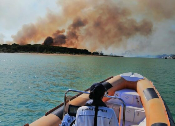 Vasto incendio alla pineta di Bibione, turisti messi in salvo dalla Guardia Costiera