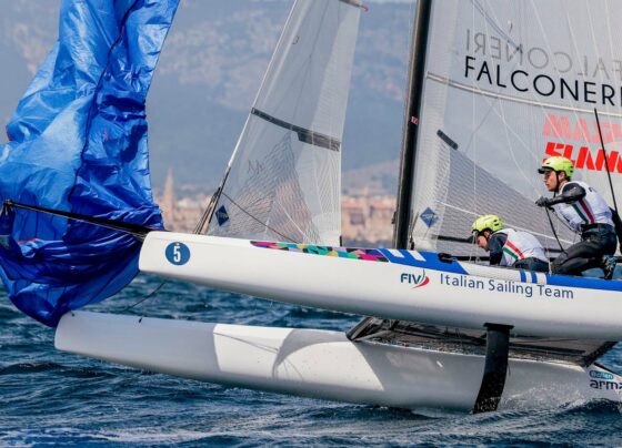 Tutte le classi scese in acqua oggi in uno spettacolo di vele che colorano lo specchio d’acqua prospicente Palma. Bene…