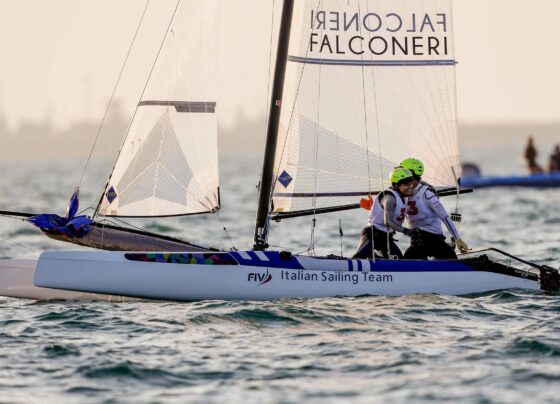 Proseguono nelle acque di Mussanah, in Oman i campionati mondiali delle classi acrobatiche 49er, 49er FX e dei catamarani Nacra…