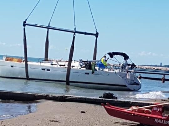 Barca spiaggiata a Caorle, oggi la rimozione con gru ed escavatore