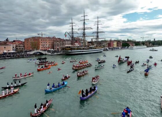 Venezia rende omaggio all’Amerigo Vespucci con un corteo acqueo mozzafiato