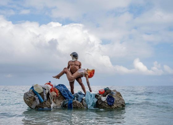 Il corpo del velista oceanico Gaetano Mura trasformato in pesce, un pesce avvolto e coperto dalla plastica. La nuova condizione…
