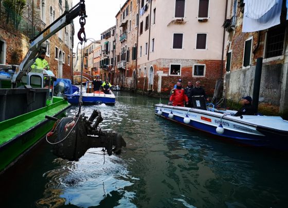 “Gondolieri sub” puliscono rio dei Santi Apostoli: recuperato anche un motore marino