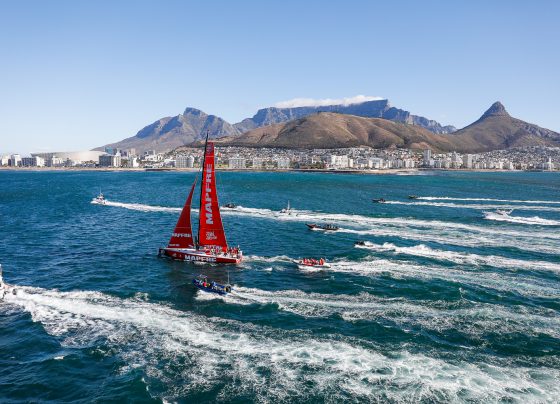 Lo scafo rosso di MAPFRE è giunto sul traguardo, posizionato ai piedi della famosissima e imponente Table Mountain alle 16.10.33…