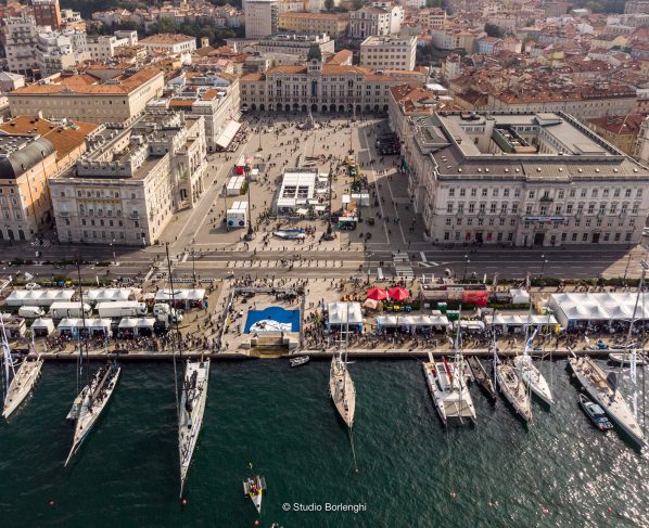 Rive libere dalle automobili parcheggiate, dal Molo Audace alla Stazione Marittima, le barche e gli equipaggi in primo piano, Piazza dell’UnitĂ dedicata alla presenza dei Gold sponsor e delle iniziative…