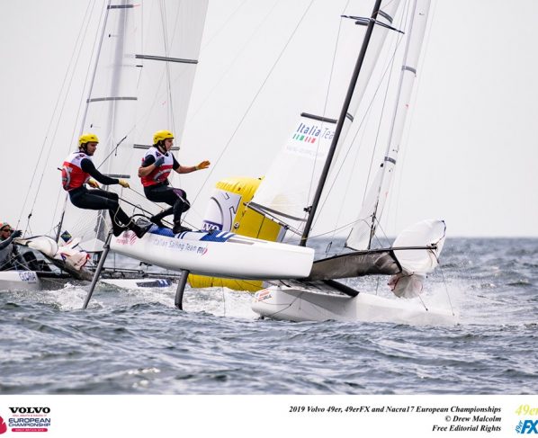 Sesto giorno ai 2019 Volvo Europeans di Weymouth (UK) delle classi olimpiche Nacra 17, 49er e 49erFX con le Fleet Series