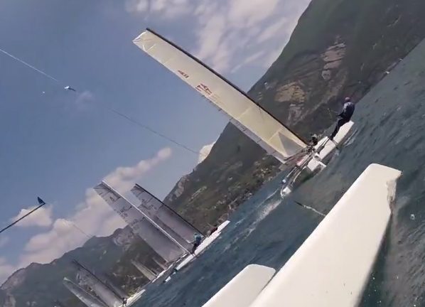 L’emozione del catamarano in solitaria, il trapezio e una cornice splendida come quella del Lago di Garda.
