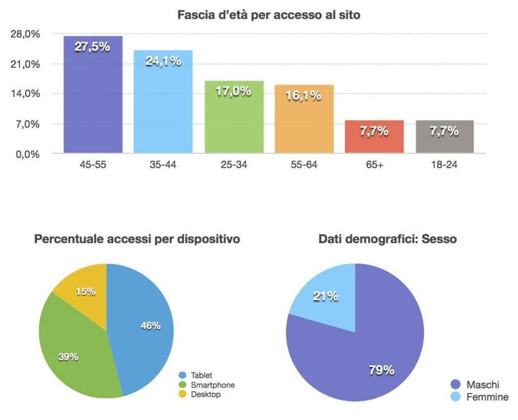 Visualizzazioni di pagina: 426.000 – Utenti 207.000 – Sessioni 317.000 | Fonte Google Analytics