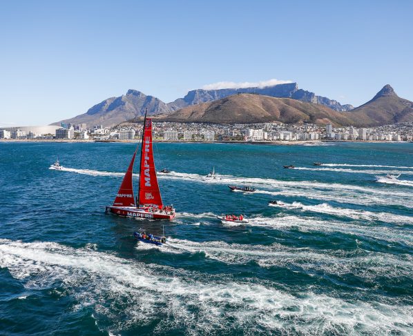 Lo scafo rosso di MAPFRE è giunto sul traguardo, posizionato ai piedi della famosissima e imponente Table Mountain alle 16.10.33 (ora italiana) dopo 19 giorni, 1 ora, 10 minuti e…