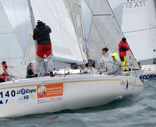 Sono le 16:01 quando, dopo 7 ore e 31 minuti di regata, Super Sail Academy, con al timone Matteo Pilati e alla tattica Roberto Benamati, taglia la linea di arrivo di Bogliaco…