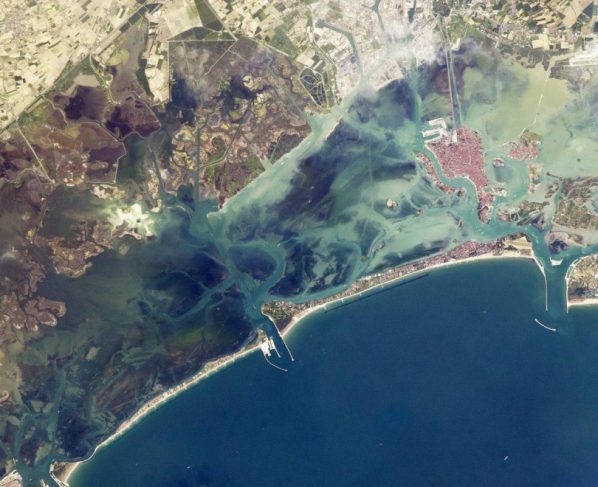 ”Una sottile isola protegge l’area dalle onde e dalle tempeste del mar Adriatico settentrionale, mentre i frangiflutti mettono al sicuro le bocche di accesso alla laguna. Le tegole rosse sui…