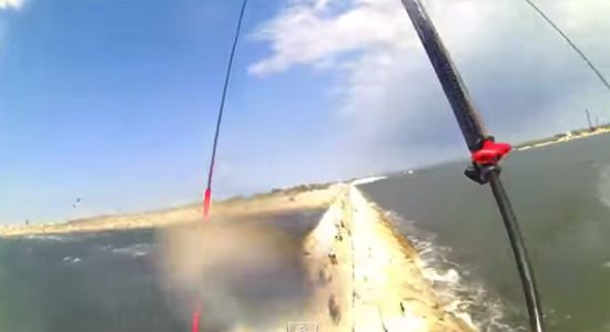 Sottomarina, con il kitesurf sopra la diga. Il video dell’incredibile salto