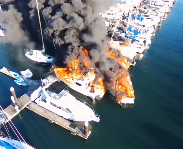 Incendio nel Marina di Everett, lo spettacolare video realizzato con il drone
