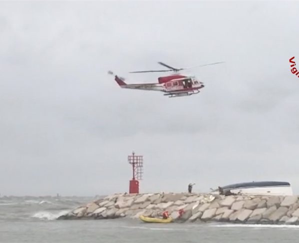 Sorpresi in mare dal peggioramento meteo: In due salvati a Porto Tolle dall’elicottero dei Vigili del fuoco