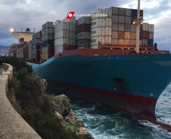 Il mercantile Gustav Maersk si incaglia nello stretto di Messina