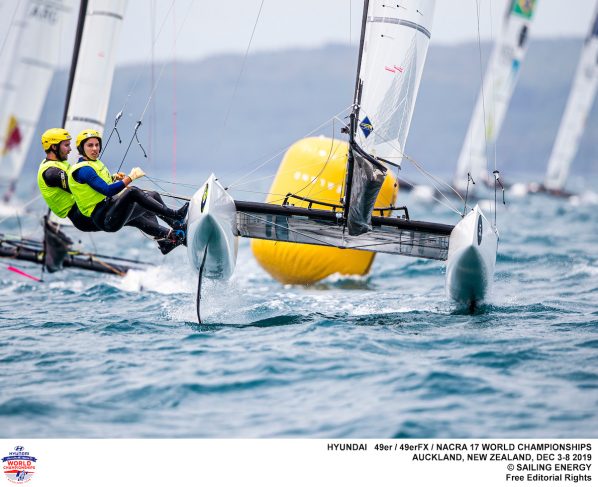 Previsioni meteo protagoniste della vigilia ad Auckland, Nuova Zelanda, in vista dei tre Hyundai World Championships 2019 delle classi olimpiche acrobatiche: 49er (maschile), 49er FX (femminile) e Nacra 17 (catamarano misto…