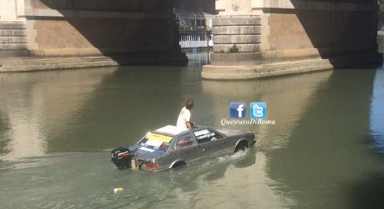 Da La Spezia a Venezia con una barca ricavata da una macchina, bloccato a Roma