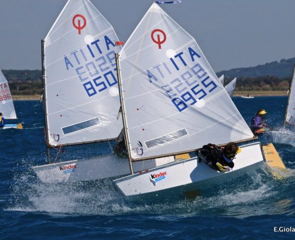 Sole, mestrale sui 14 nodi, un po’ di ondina hanno caratterizzato la prima giornata del Trofeo Optimist Italia Kinder + Sport, che ha impegnato 310 regatanti dai 9 ai 15…