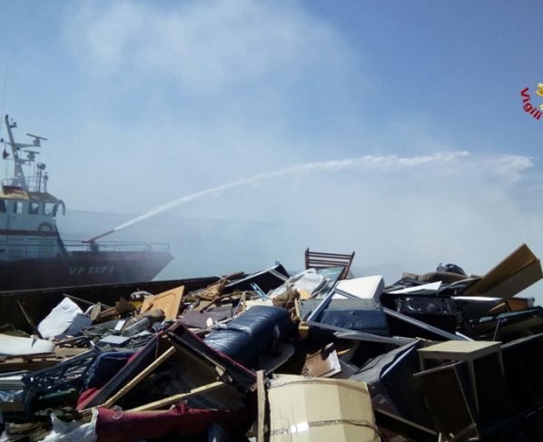 Razzo di segnalazione genera incendio in un capannone di rifiuti